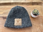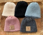 This hat is knit with super soft 100% acrylic yarn. You can order with the Hello World tag, or just plain.